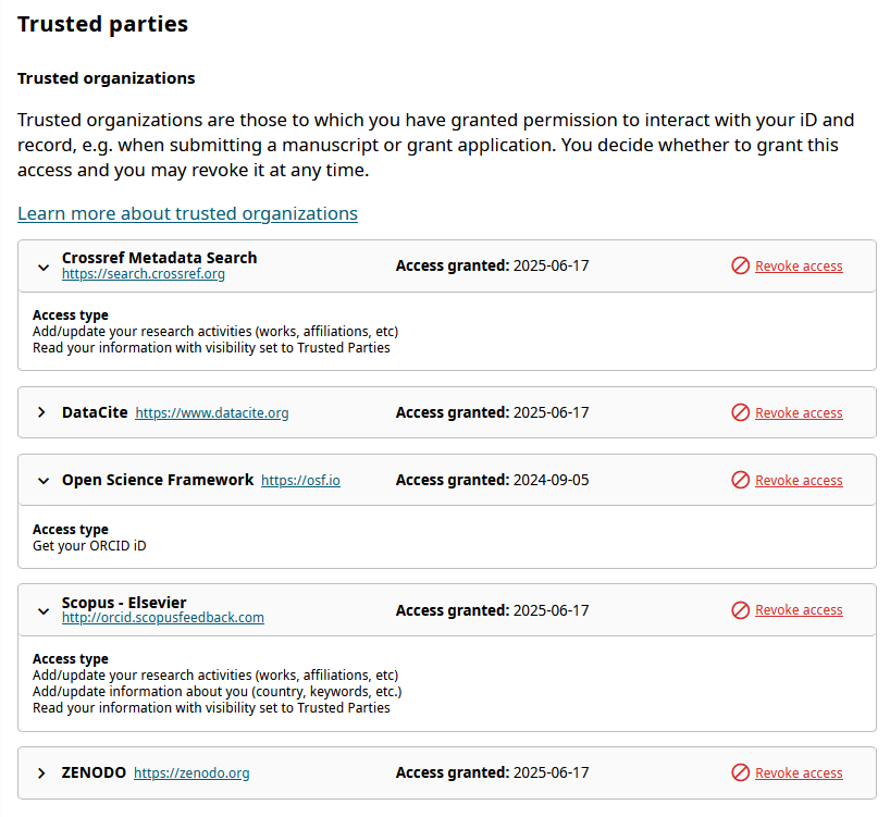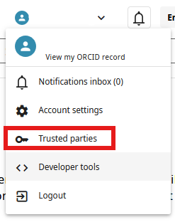 1) If you want to find out which databases you have permitted access to your ORCID account, or if you want to withdraw consent from some of them, open your account overview, where you can find the Trusted Parties section.